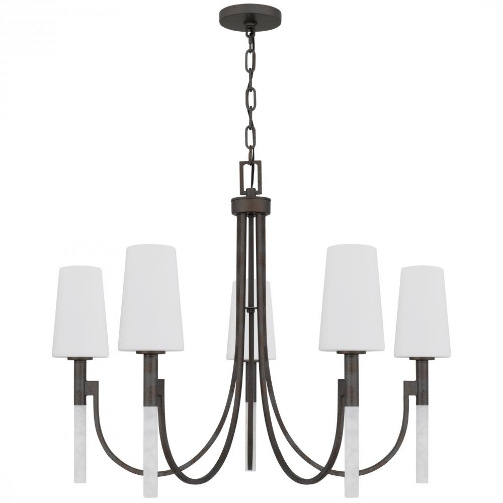 Graceful curves meet sculptural elegance in the Eloura Chandelier, a statement of timeless beauty and modern romance. Finished in a deep iron gate patina, its sweeping arms cradle opal etched glass shades that softly glow like candlelight at dusk. Beneath