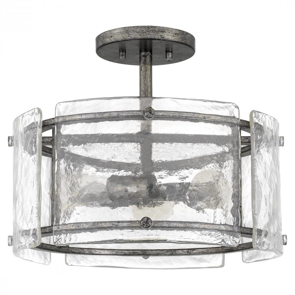Semi-flush mount 3 light mottled silver