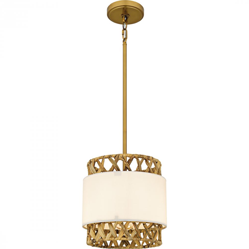 Part of the Quoizel Naturals series, Kate makes a distinctive statement with its combination of rattan and fabric shades. Finished in brushed gold, Kate embodies coastal style with its natural and elegant design elements. Available as a pendant, mini penda