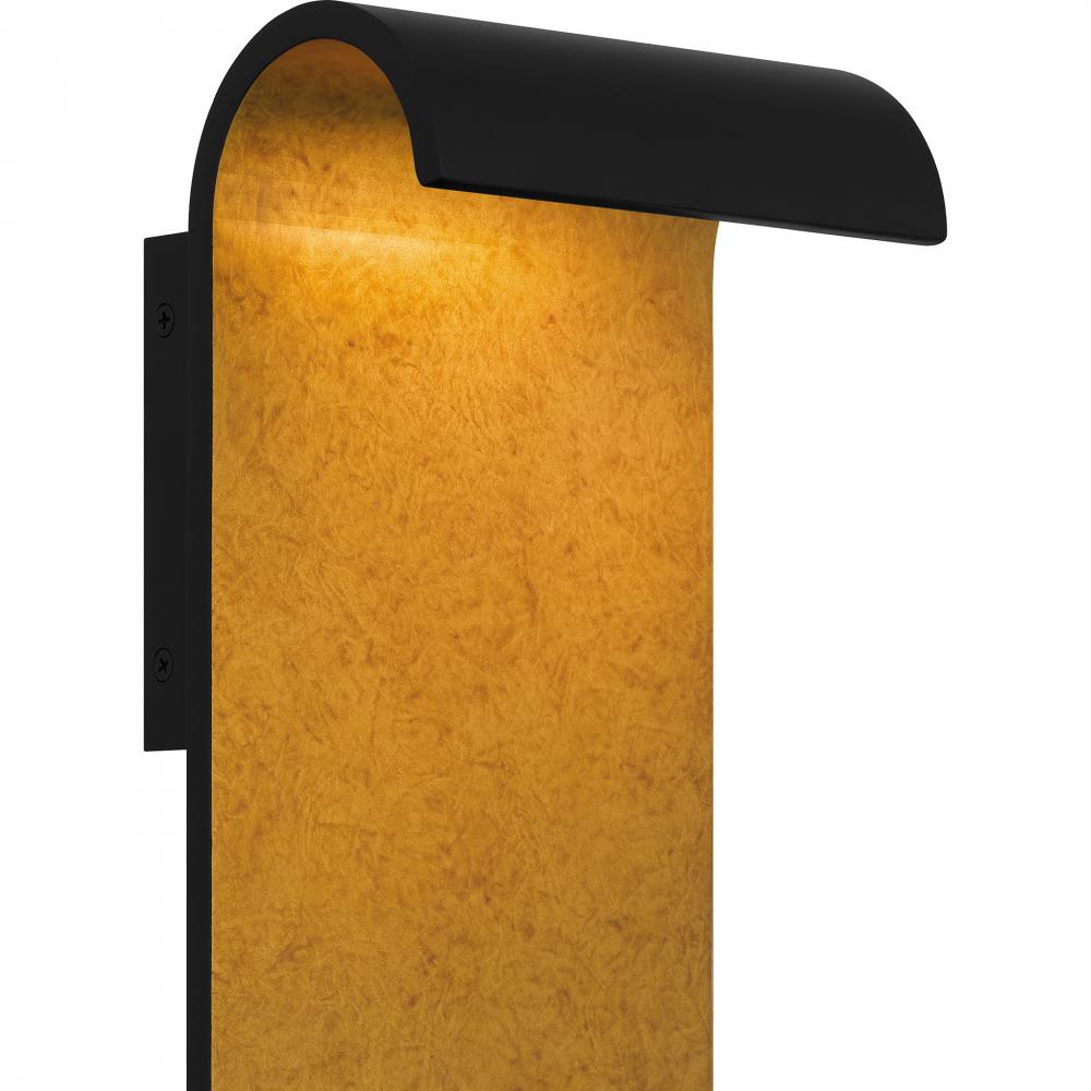 Upgrade your homes exterior with the contemporary style of the Lunar wall lantern collection. The open silhouette is finished in matte black and accented by a gold interior, which shines brilliantly under the integrated LED light source. With its striking