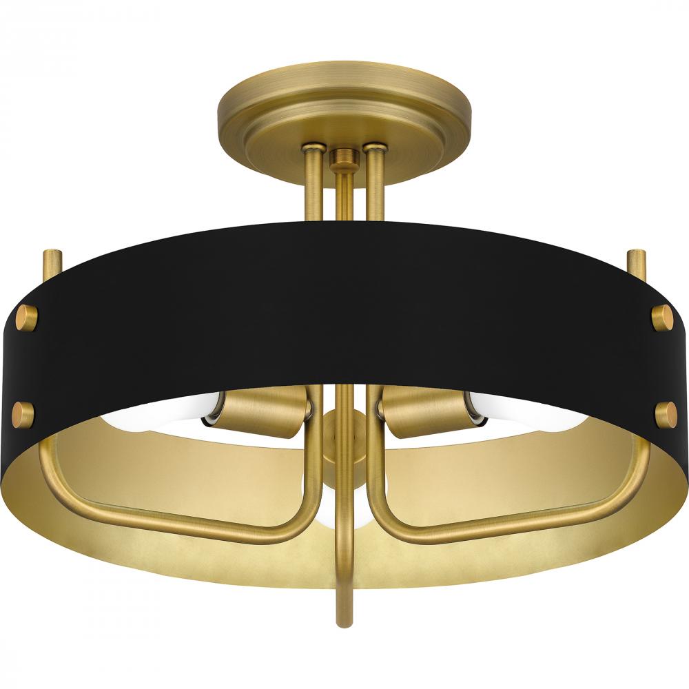 Madden is as modern as it is sculptural. The elongated black metal shades are enhanced by gold interiors and matching accents, creating a sense of contrast and warmth. With its geometric shape and aged brass finish, Madden makes a bold choice in any settin