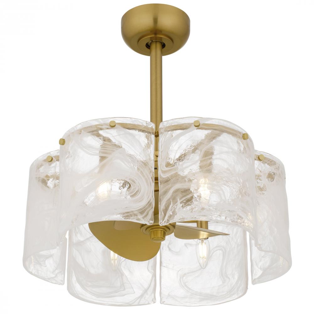 Maisie captures the soft poetry of air and light in motion. Gently curved panels of white swirl glass surround the fixture like flowing silk, their delicate patterns evoking wisps of clouds on a golden afternoon. Each glass piece is uniquely marbled, creat