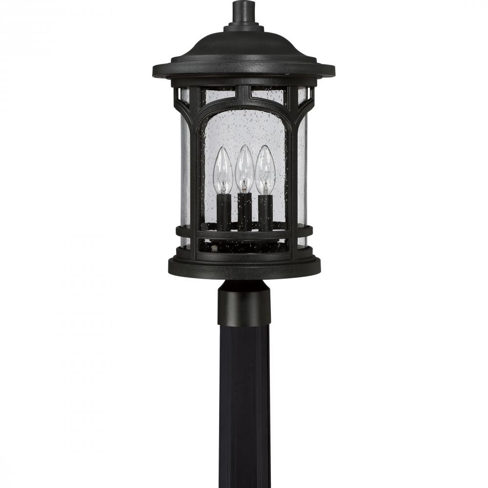 Marblehead is a rich masculine outdoor series and a welcome addition to the Quoizel Coastal Armour Collection. The stately form of the metal arches gives the clear seedy glass a window like appearance. Made from a new weather resistant outdoor composite