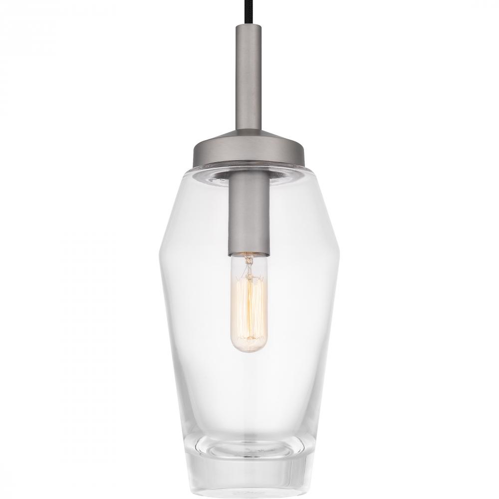 With a clear glass shade and sleek antique nickel finish, the Xander mini pendant adds the perfect transitional touch to any room. Xander features a simple silhouette with softly angled lines, adding a touch of modern style. Hang Xander by itself or in a g