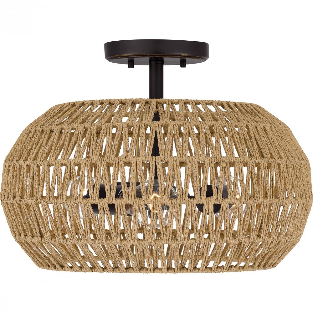 Bohemian and beachy. The Casablanca semi-flush mount instantly draws the eye upward with its woven pattern and palladian bronze finish. In a bedroom, Casablanca creates a romantic aesthetic; in a common space, it adds warm and welcome ease.