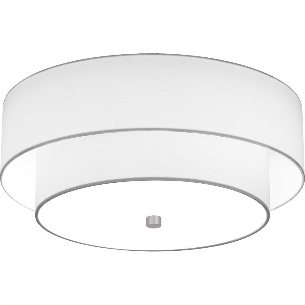 Prewetts understated style provides a soft transitional look for most any room. The white fabric shade diffuses the light evenly, illuminating your home with a warm ambiance. Finished in brushed nickel, the Prewett semi-flush mount is a stylish choice in a