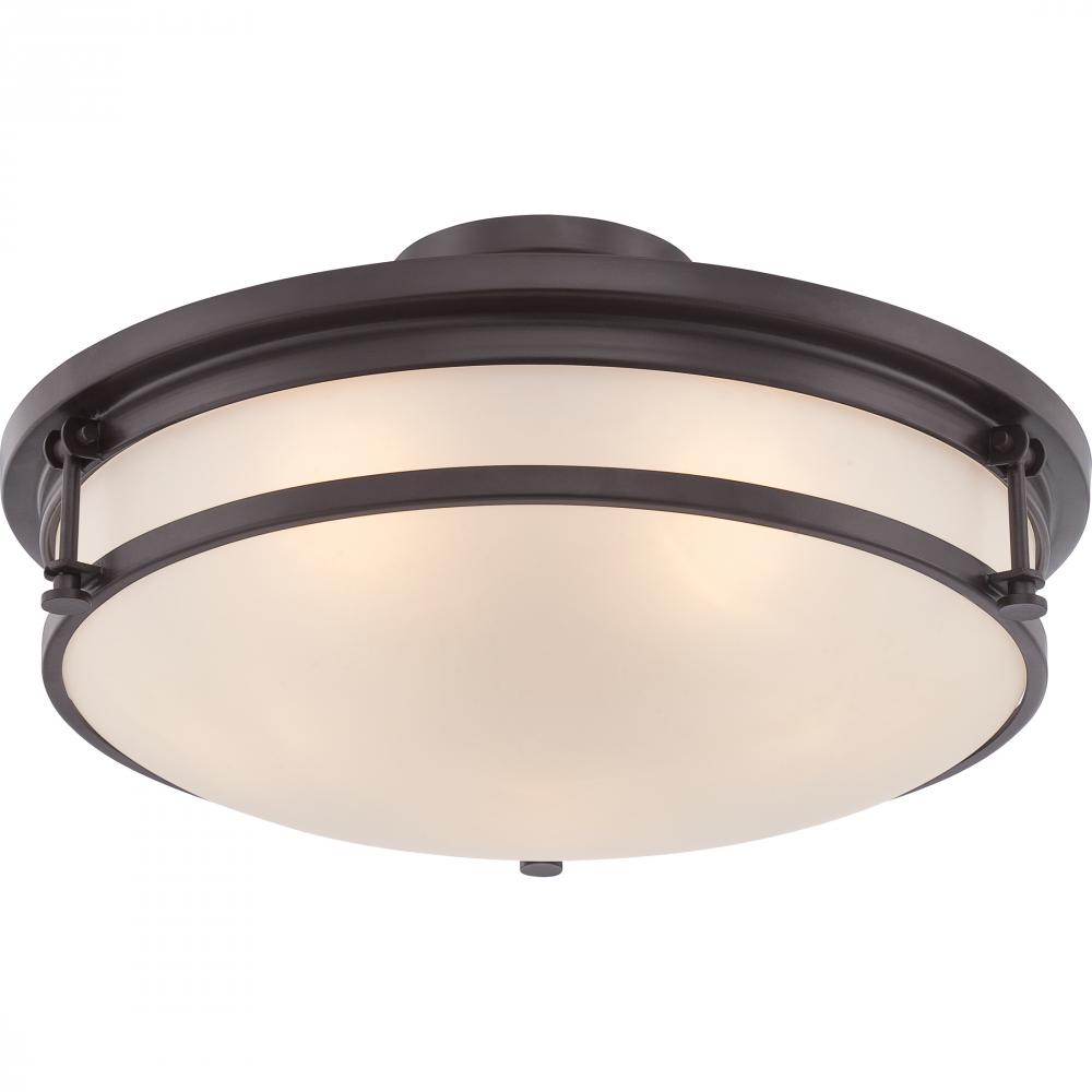 A nautical inspired design that is classic yet simple the Sailor flush mount features etched glass that diffuses the flow of light. The rich matte Western Bronze finish complements it perfectly.