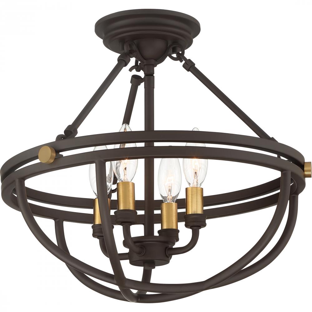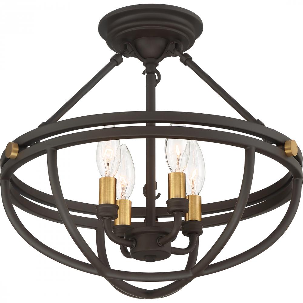 Semi-flush mount 4 light western bronze