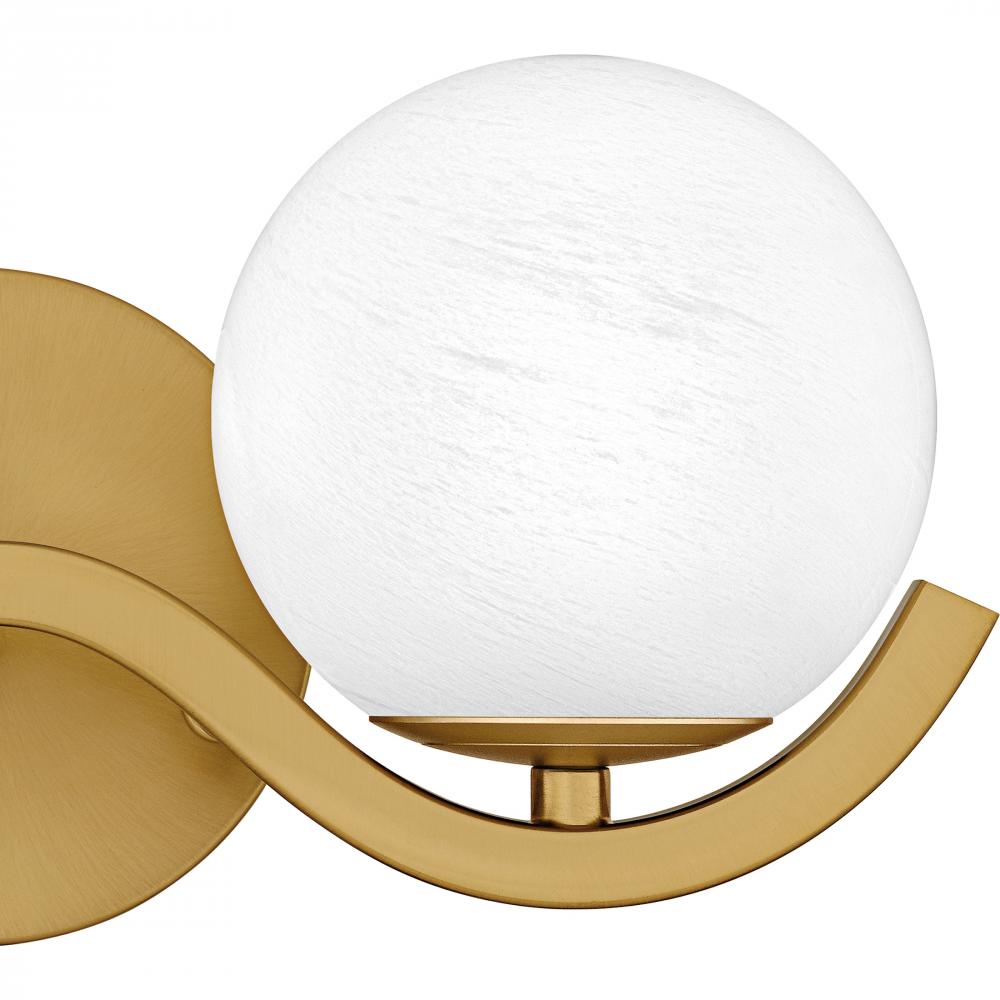 True to its name, the Spherical vanity light embodies modern art with its graceful curved lines and distinctive glass orbs. Finished in lustrous aged brass, this sculptural fixture features striking white cloud glass spheres that make a bold style statemen