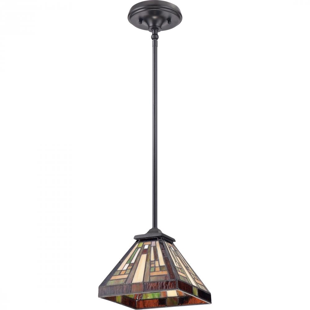 This handcrafted Tiffany style collection illuminates your home with warm shades of amber bisque and earthy green arranged in a clean and simple geometric pattern reminiscent of the works of Frank Lloyd Wright. The sturdy base complements the Arts & Cra