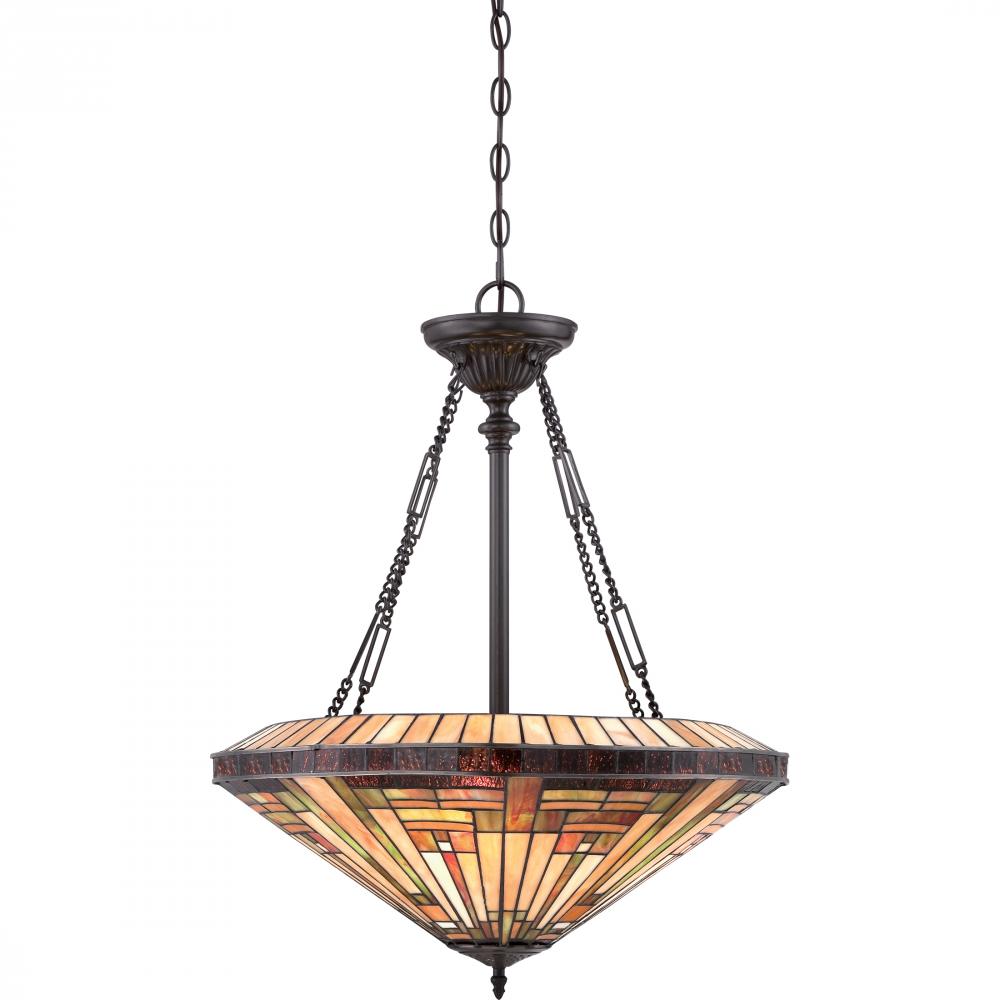 This handcrafted Tiffany style collection illuminates your home with warm shades of amber bisque and earthy green arranged in a clean and simple geometric pattern reminiscent of the works of Frank Lloyd Wright. The sturdy base complements the Arts & Cra
