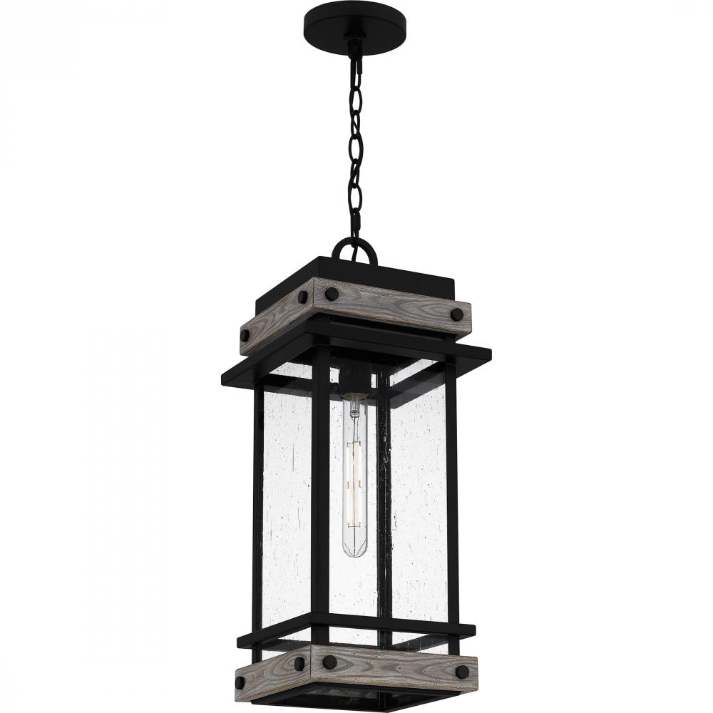 Create a lasting impression with Strader outdoor lanterns. A matte black frame and distressed wood accents pair with clear seedy glass panels for a farmhouse-ready look. Available as a hanging lantern or in various sizes of wall lantern, Strader is an easy