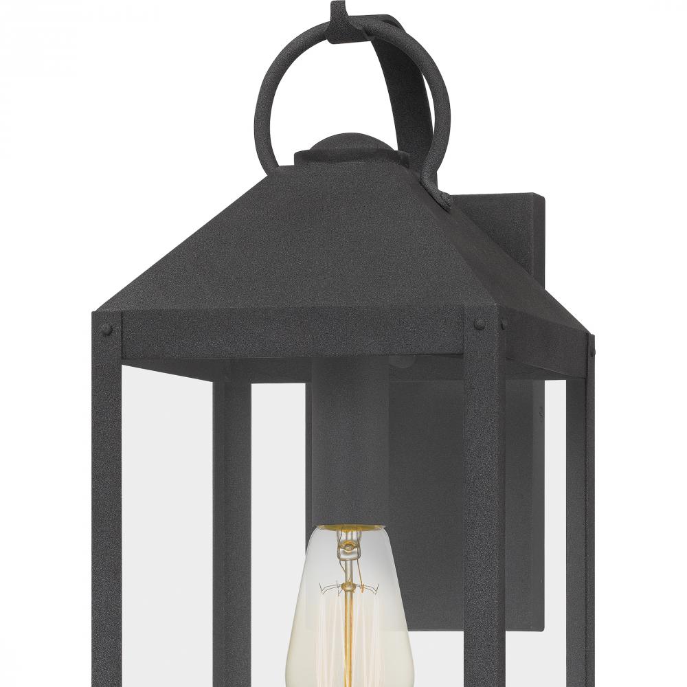 Wow your guests and neighbors with the Thorpe collection of outdoor lanterns. Clear tempered glass panels are enclosed in a traditional rectangular Mottled Black frame, providing life-long style and durability. Thorpe comes in many options including a han