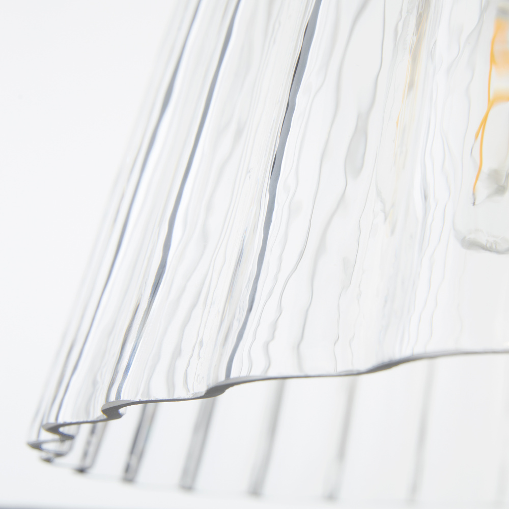 Lawton is a playful transitional pendant featuring pleated conical glass, ramped arms, and contemporary finishing. Early American and European styles inspired the clean bobeche, breaks, and steps in the details. Available in matte black or brushed brass, this pendant brings a welcoming touch to living rooms, kitchens, or entryways.