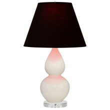 Bone Glazed Ceramic with Lucite Base Small Double Gourd Accent Lamp with Pearl Dupioni Fabric Shade - Our Double Gourd collection features a simple but gracefully curving silhouette. Available in a wide array of vibrant colors and several different base finishes.