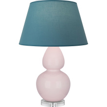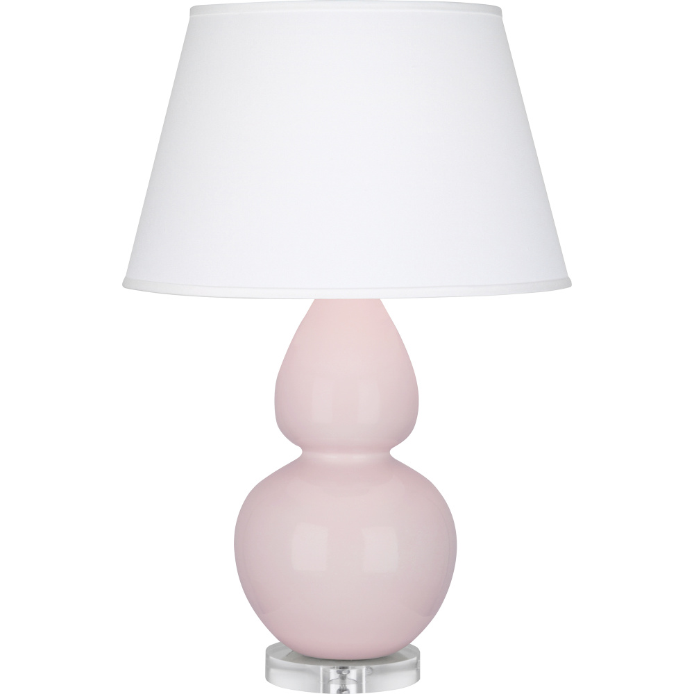 Rose Water Glazed Ceramic with Lucite Base Double Gourd Table Lamp with Pearl Dupioni Fabric Shade - Our Double Gourd collection features a simple but gracefully curving silhouette. Available in a wide array of vibrant colors and several different base finishes.