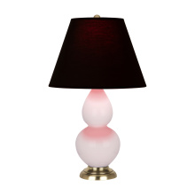 Rose Water Glazed Ceramic with Antique Brass Finished Accents Small Double Gourd Accent Lamp with Pearl Dupioni Fabric Shade - Our Double Gourd collection features a simple but gracefully curving silhouette. Available in a wide array of vibrant colors and several different base finishes.