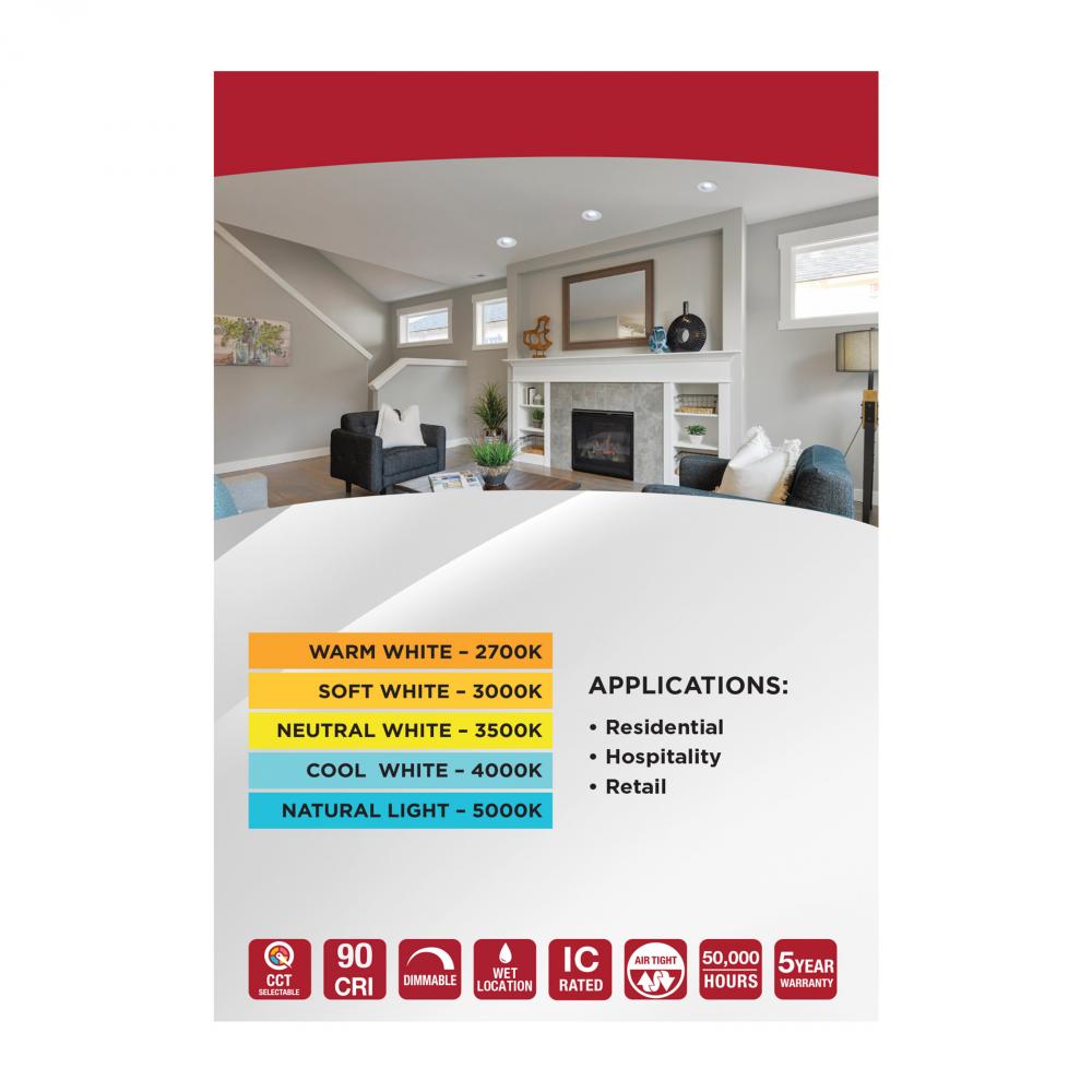 10 Watt LED Direct Wire Downlight; Remote Driver; CCT Selectable; Dimmable; Round; White Finish