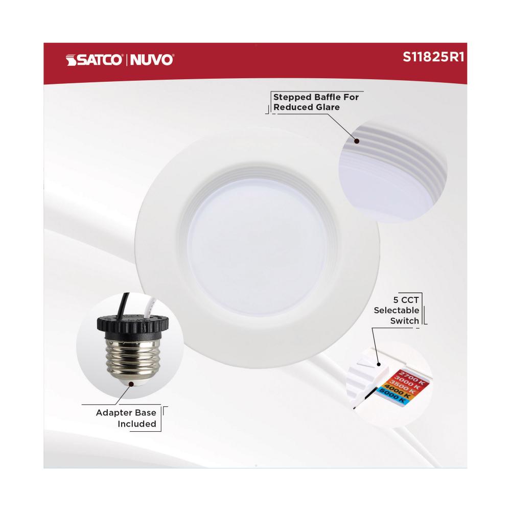 SATCO NUVO's S11825R1 LED Retrofit Downlight is the easy way to convert traditional recessed lighting to high-lumen LED. This 5/6-inch round fixture is sized for, and comes ready with, an E26 base adapter for instant illumination when installed with ex