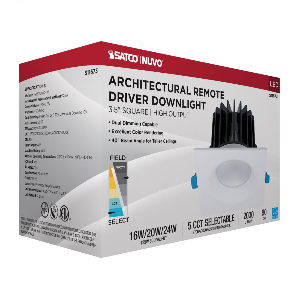 16/20/24 Watt LED Remote Driver Downlight; 27K/30K/35K/40K/50K CCT; Field Selectable; Square; White Finish; Dual Dimming; 120-277 Volt