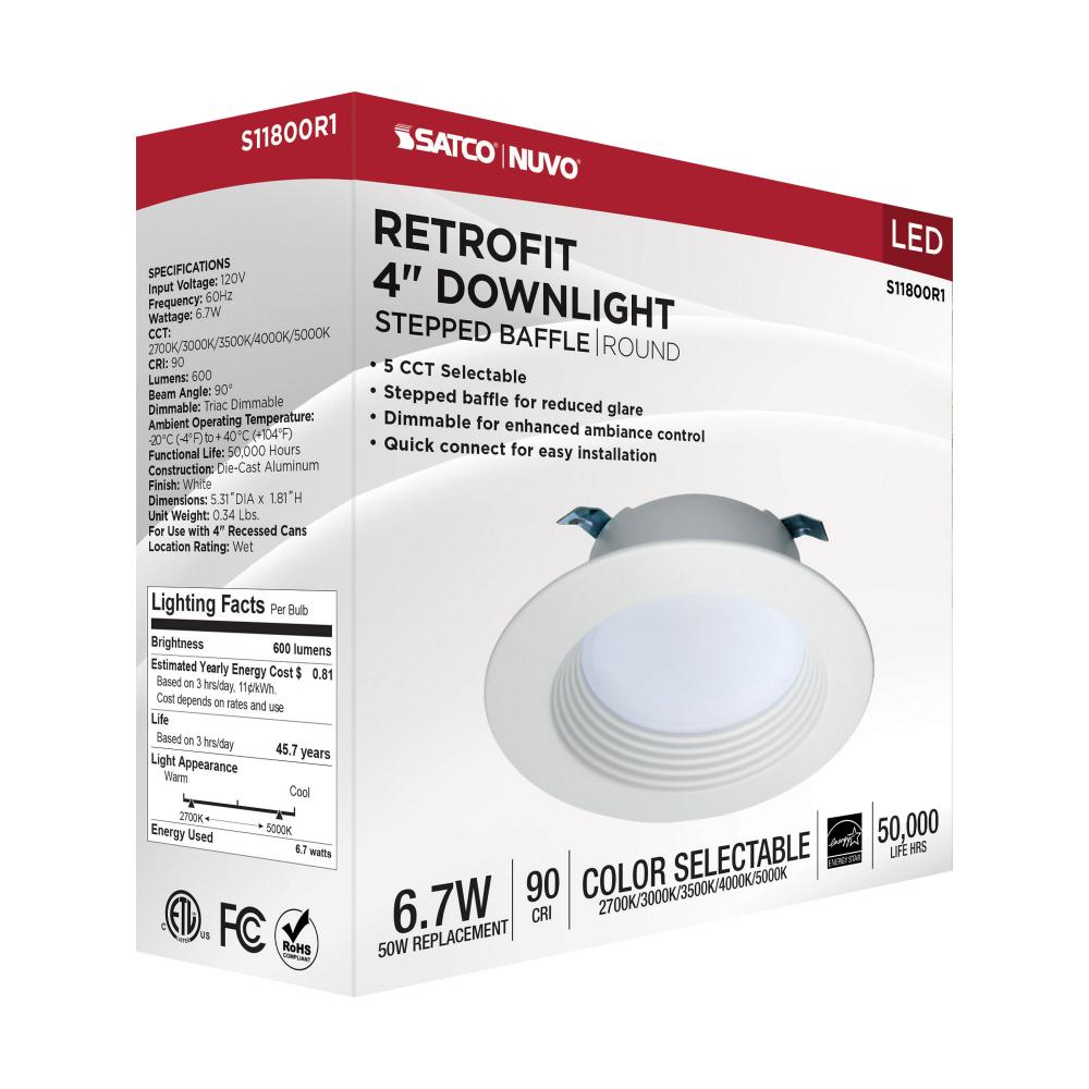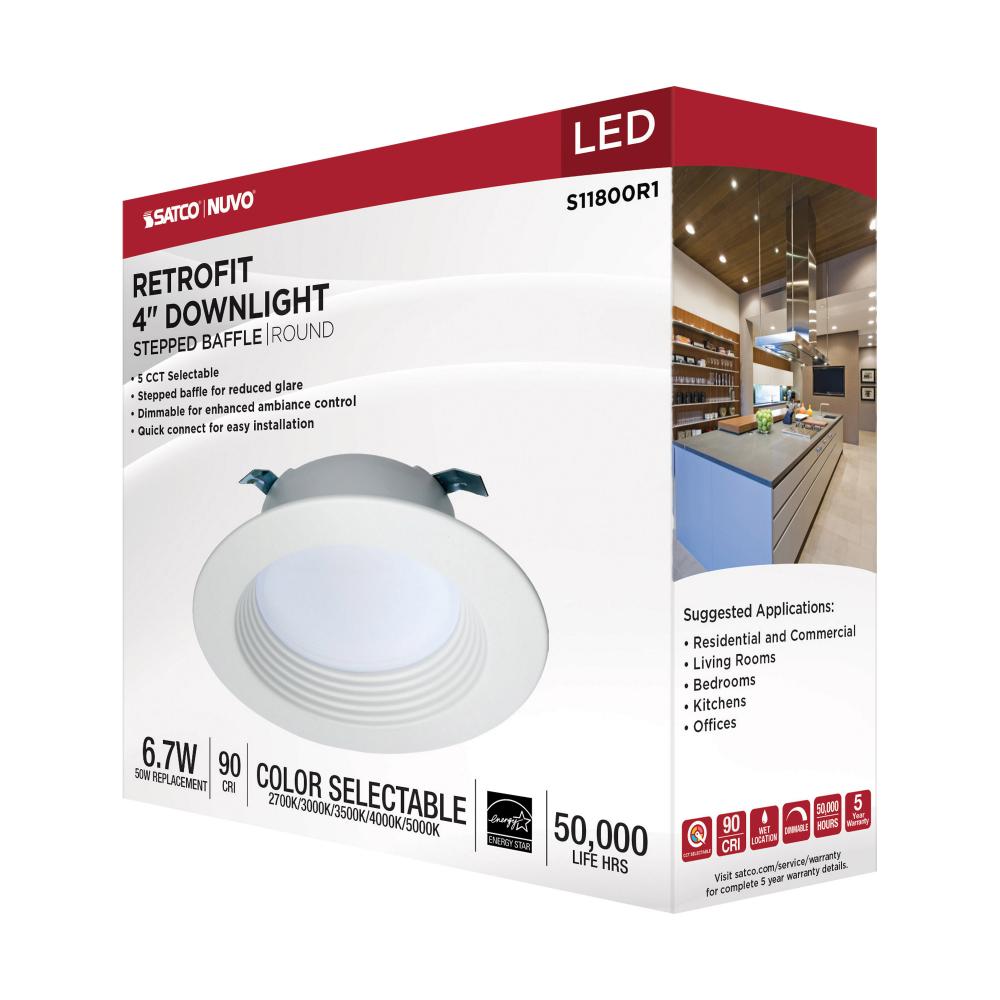 SATCO NUVO's S11800R1 LED Retrofit Downlight is the easy way to convert traditional recessed lighting to LED. This 4-inch round fixture is sized for, and comes ready with, an E26 base adapter for instant illumination when installed with existing cans.
