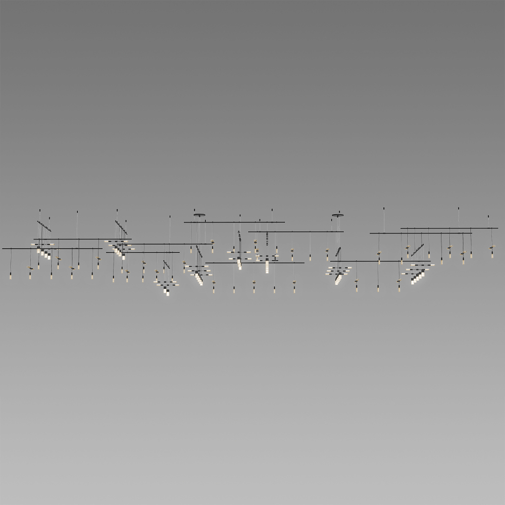 Seen from below, the right-angled interconnection of tiered elements composes an orderly and precise Gallery Matrix configuration. It is an intricate web of texture and interest that is expandable in length, width, and height.