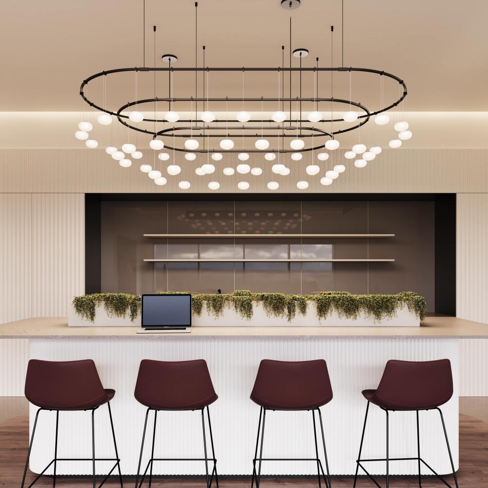 40" x 88" Path 3-Bar Racetrack w/ Height Adjustable Etched Globe Luminaires