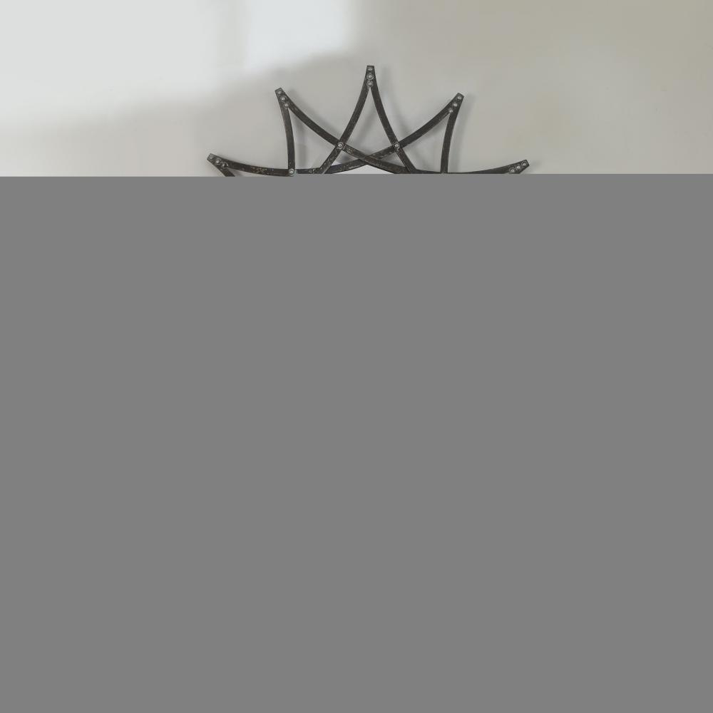 Handcrafted from forged iron, this mirror showcases a star-shaped frame finished in an aged crackled charcoal with a light gray glaze and antiqued silver rivet like accents.