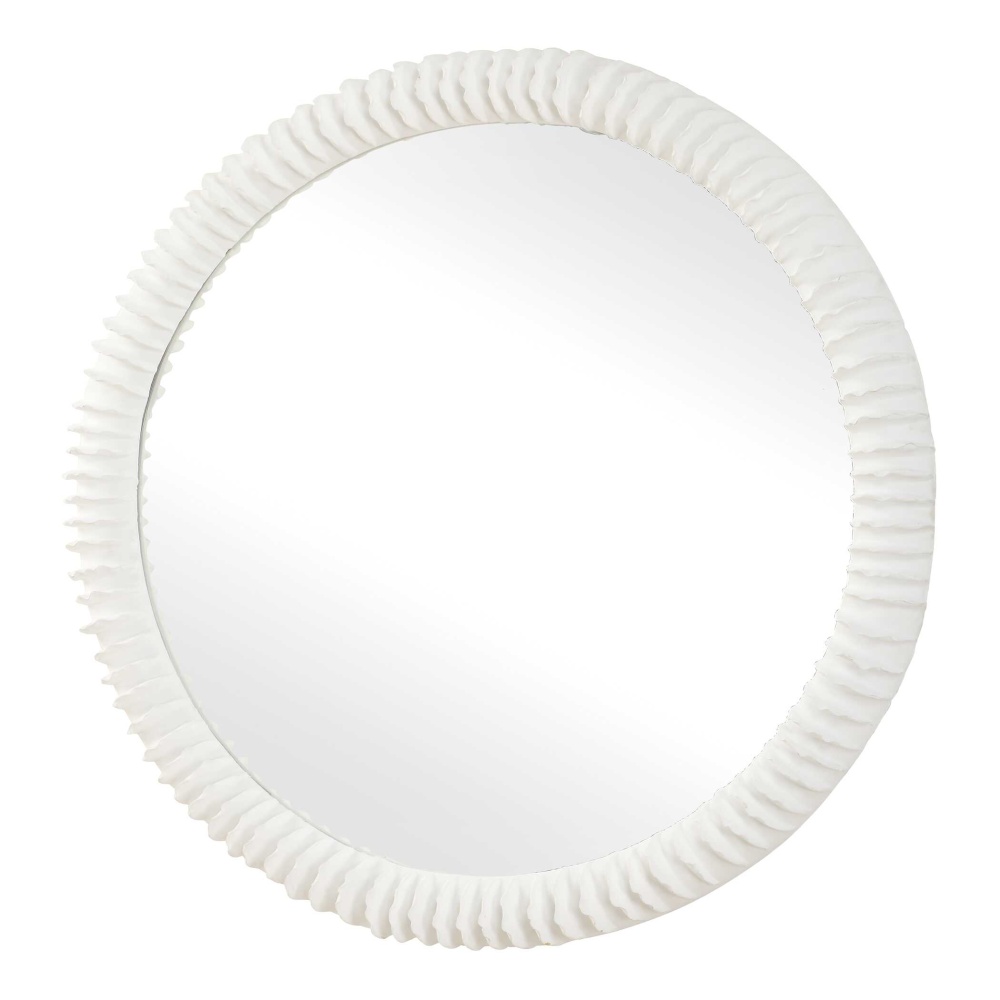 The Akiko Round Mirror Features A High Fired Ceramic Base Adorned With Beautifully Crafted Matte White Ruffles, Reminiscent Of Flowing Waves, Adding A Touch Of Nautical Charm.