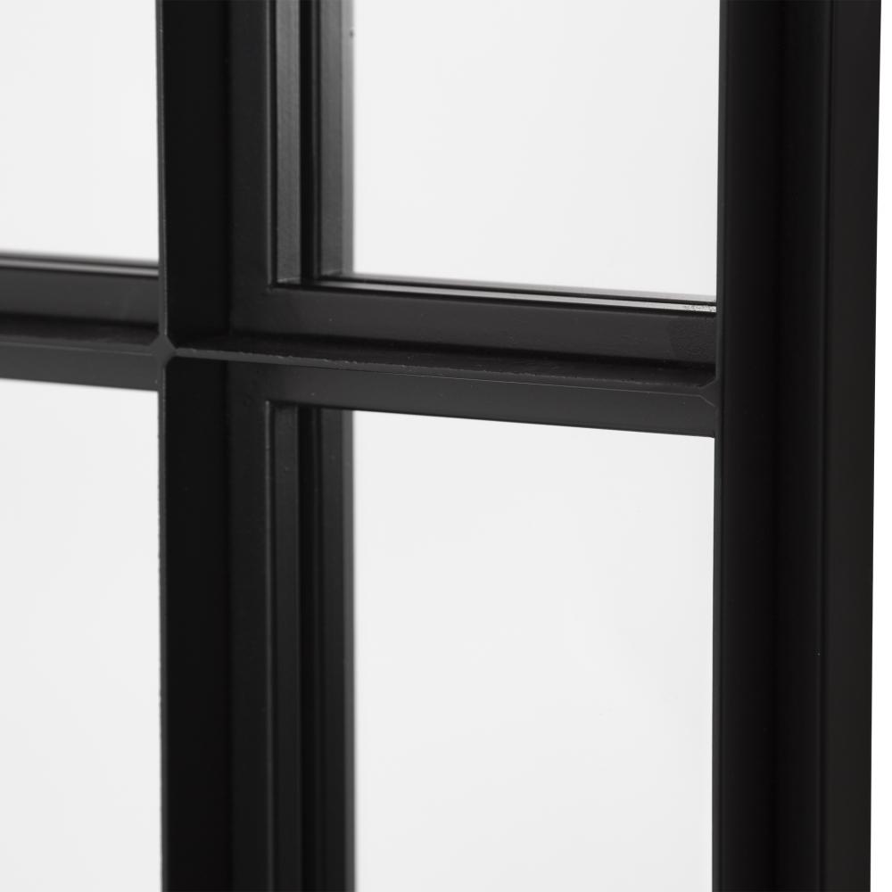 This Mirror Features A Heavy Iron Frame with Deep Channels Inspired By Old Warehouse Windows, Finished in Satin Black. May Be Hung Horizontal or Vertical.