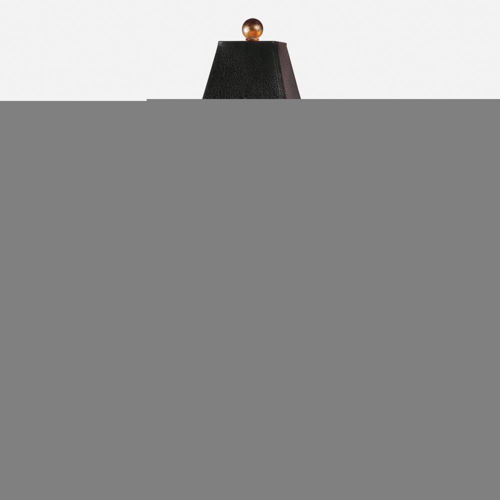 This Attractive Rope Lamp Has A Matte Black Finish Washed in Antique Gray Glaze and Accented with A Hand Applied Bronze Leaf. The Hardback Shade is Antique Black Crackle.