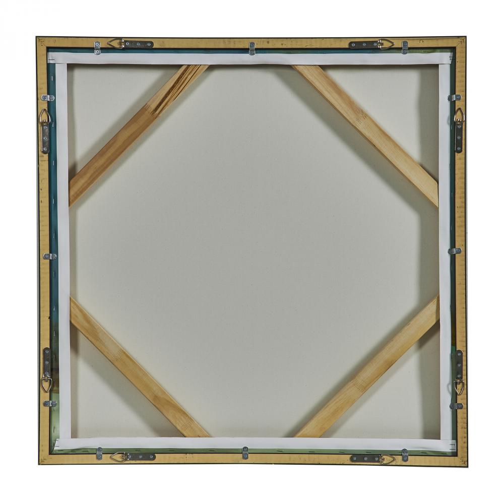The Bowery Giclee on Canvas Exhibits A Tranquil Display of Teal and Golden Yellow. Accented By A Solid Wood Gallery Frame with Gold Finish. May Be Hung Horizontal or Vertical. Each Canvas is Proudly Handcrafted and Printed in The USA. Artwork By Sarah Stockstill.