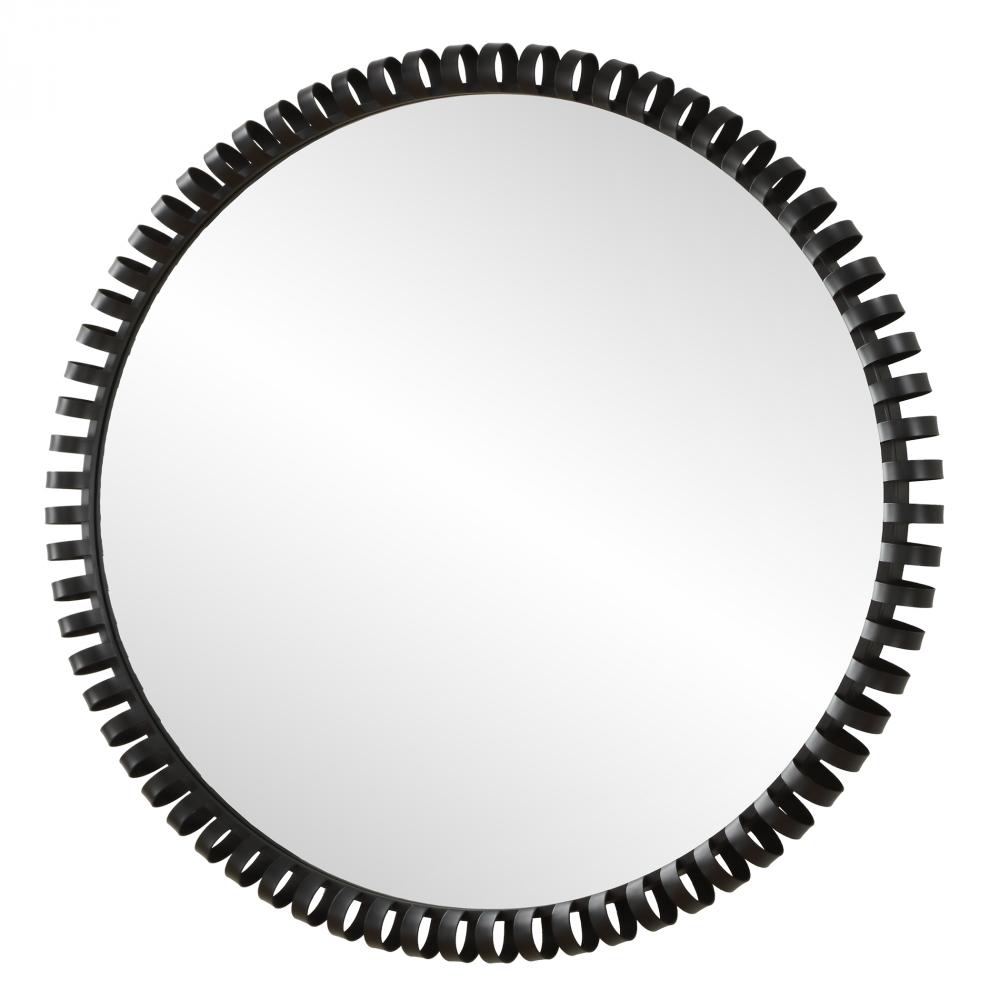 This Large Round Mirror Is Crafted From Solid Iron And Elegantly Finished In Satin Black. Its Commanding Presence Is Accentuated By Thick Rings Surrounding An Inner Band, Adding A Touch Of Contemporary Sophistication To Any Space.