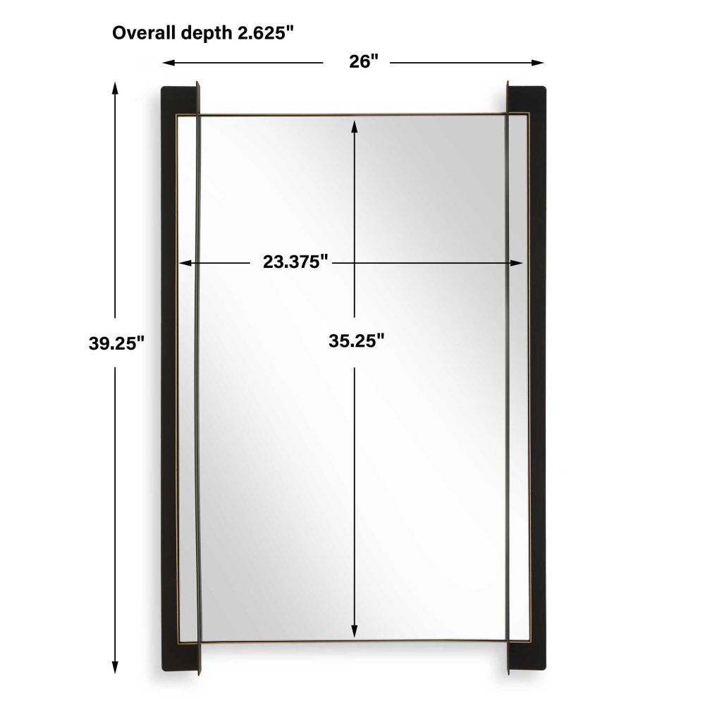 This Mirror Blends Contemporary Styling With Industrial Elements, Featuring A Parallel Floating Matte Black Iron Frame With Strong Corner Details, Complemented By A Thin Gold Leaf Inner Liner.