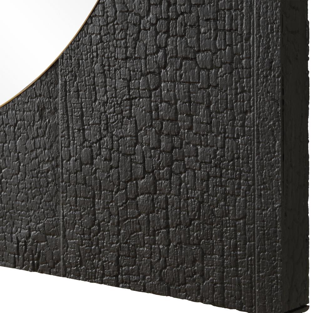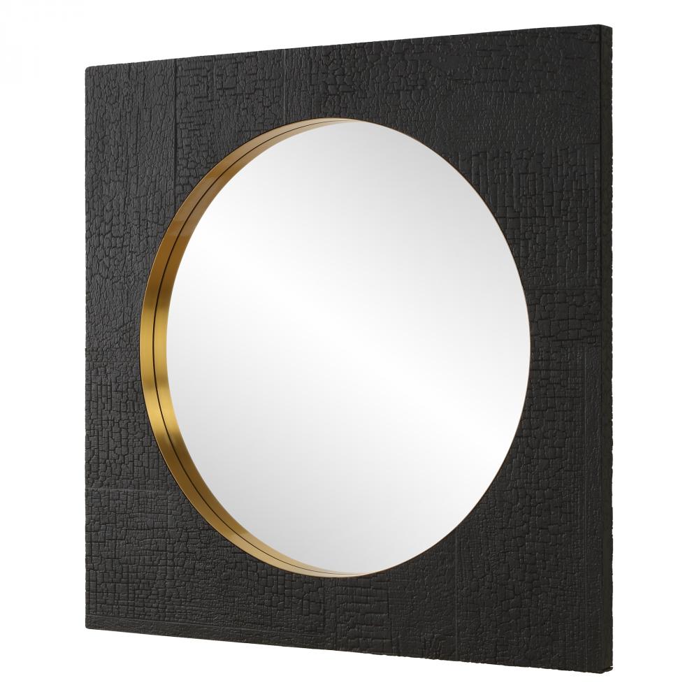This Square Mirror Emulates The Timeless Art Of Wood Charring, Its Textured Faux Surface Finished In A Rich Black Captures The Essence Of Craftsmanship. Accentuated By A Brass-plated Stainless Steel Inner Band, This Mirror Radiates Sophistication And Style