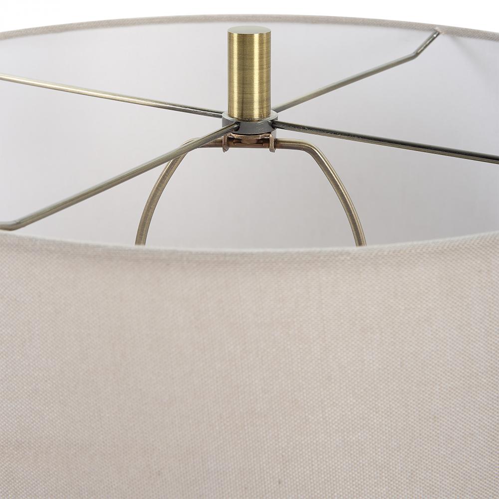 Rustic Meets Sophisticated with The Gorda Lamp. Featuring Heavily Textured Bronze Ceramic with A Green Patina Overlay Accented with Plated Brushed Antiqued Brass Details. The Round Drum Hardback Shade is A Beige Linen Fabric. Due to The Nature of Fired Glazes on Ceramic Lamps, Finishes Will Vary Slightly.
