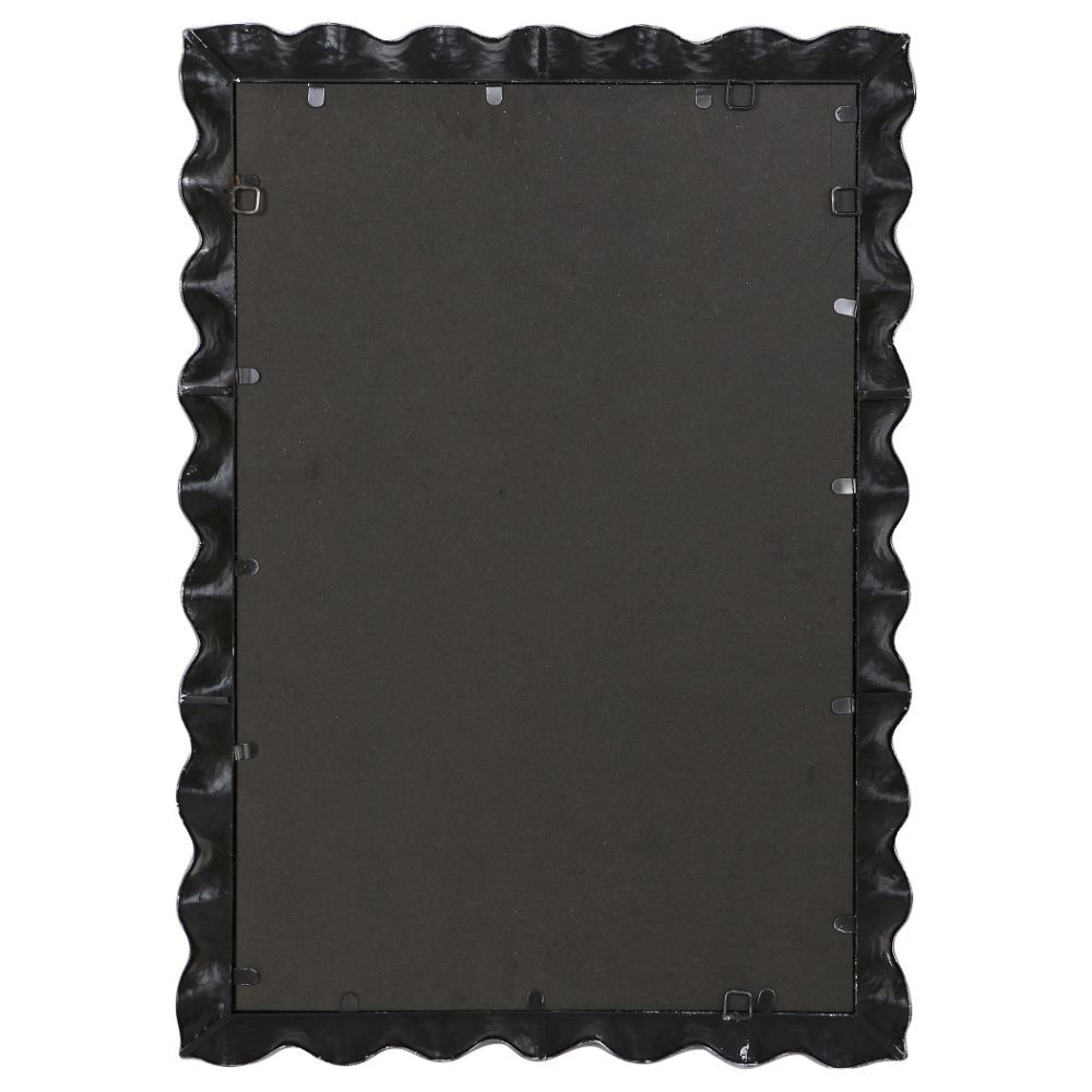 This Mirror Features A Hand Forged Metal Frame Finished in Silver Leaf with An Organic, Scalloped Edge Design. A Generous 1 1/4" Bevel is Added to This Piece, Which May Be Hung Horizontal or Vertical.