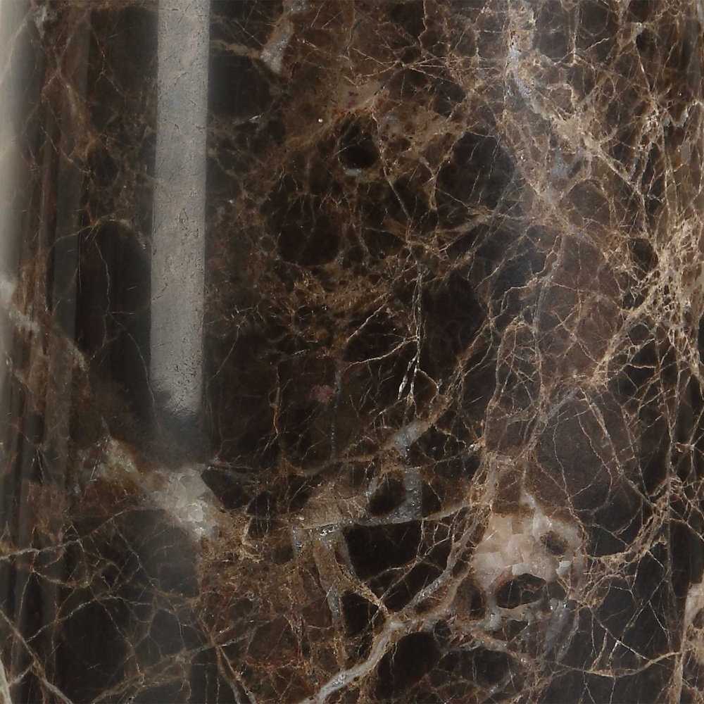This Table Lamp Features An Hourglass Shaped Base Made Two Tapered Chocolate Brown Marble Cones With White And Tan Veining, Accented With Antique Brass Plated Details. The Round Hardback Shade Is Covered In A Light Beige Linen Fabric With Natural Slubbing. True To The Nature Of Natural Materials, Each Piece Will Have Unique Marbling And Veining Throughout.