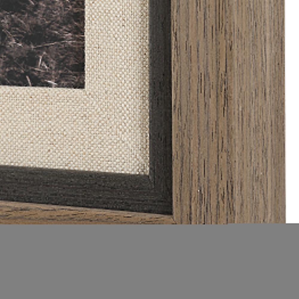 The King Of The Hill Framed Print Features A Captivating Photograph Of A Lone Highland Cow Set Against A Bold Black Background And Complimented By A Rustic Wood Tone Frame And Distressed Black Liner. Its Striking Composition And Dramatic Contrast Make It A Standout Piece, Perfect For Adding A Touch Of Rustic Elegance To Any Space.