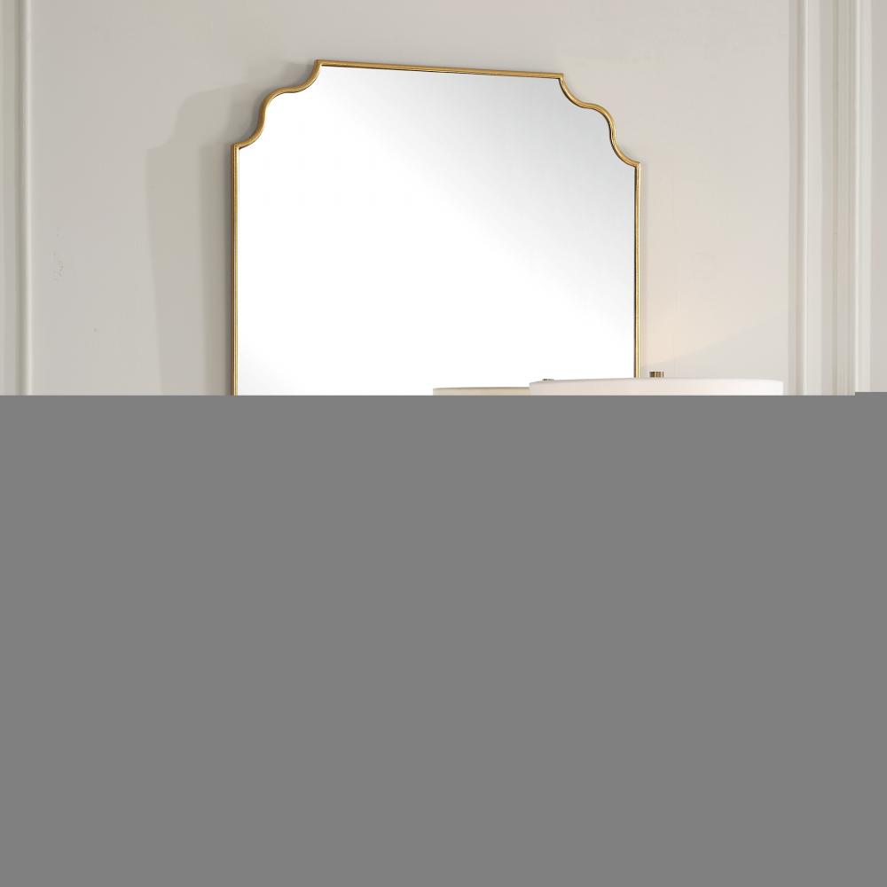Elevate Your Space With This Updated Traditional Mirror Featuring A Petite Frame, Adorned With Graceful Curves, Finished In A Lightly Antiqued Gold Leaf Adding A Touch Of Timeless Elegance To Any Room. May Be Hung Horizontal Or Vertical.