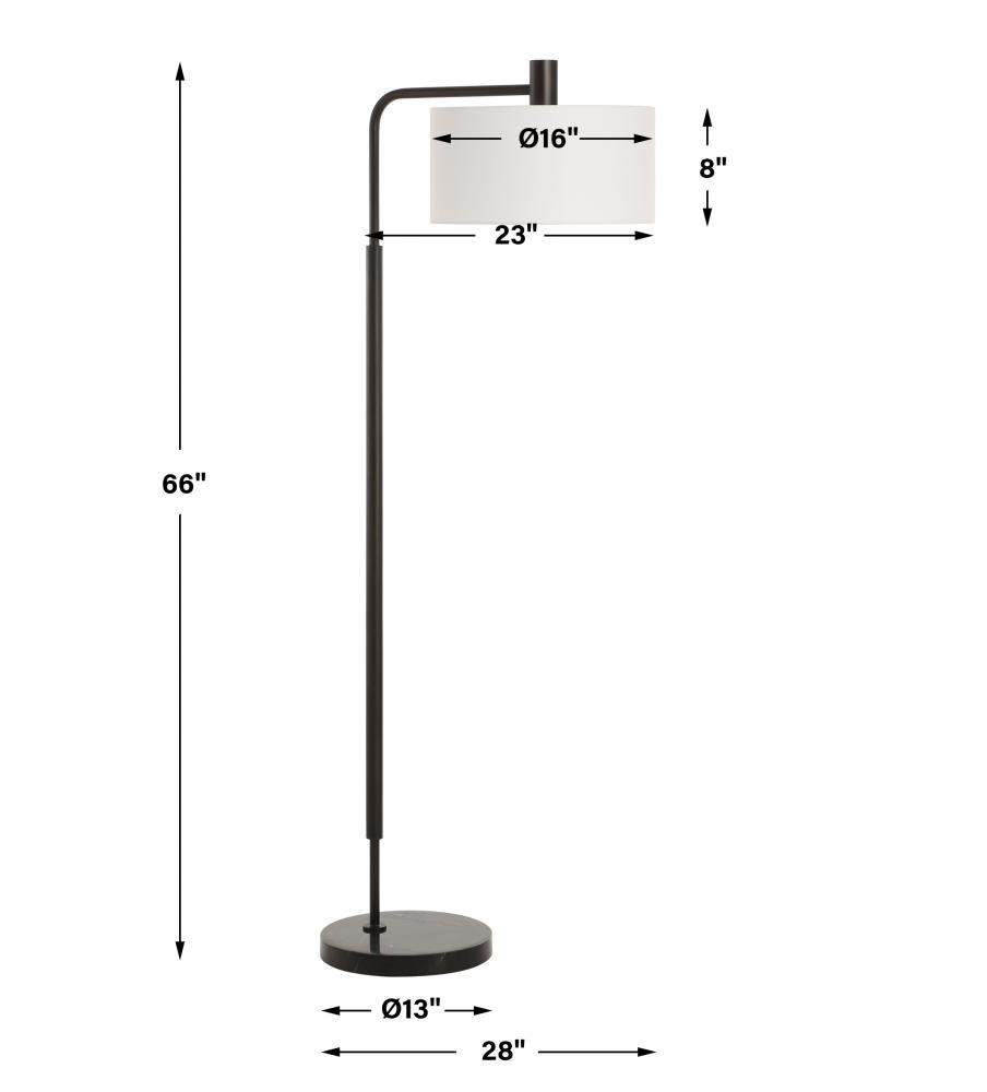 The Richie Floor Lamp Is Crafted From Steel With A Satin Black Finish Seamlessly Anchored By A Thick Black Marble Foot. This Floor Lamp Features A Suspended Round Hardback Shade That Is Covered In White Linen Fabric.
