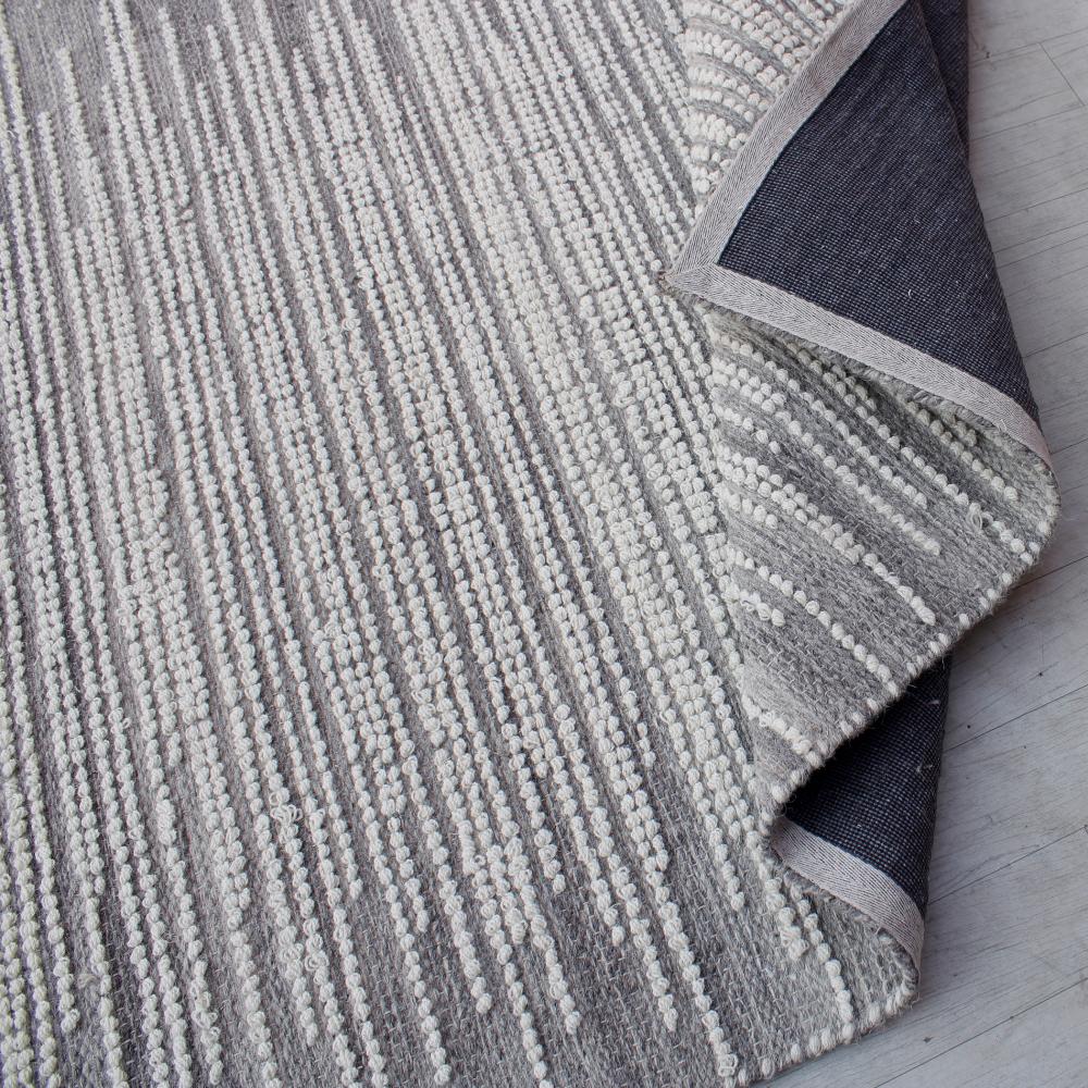 This Hand Woven Rug Features Natural Undyed Gray Wool with Looped Ivory Raised Details.