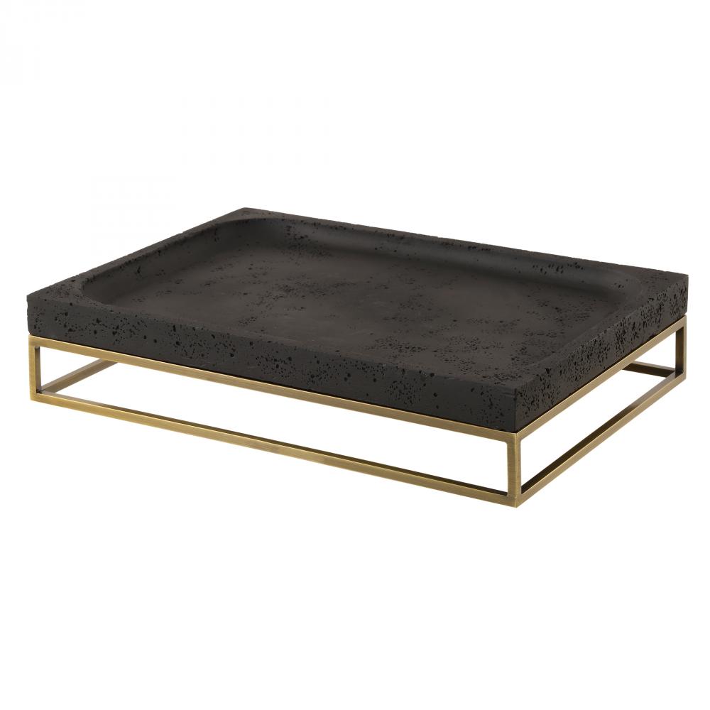 Discover Elegance Redefined With Our Sleek Rectangular Tray, Meticulously Crafted From A Distinctive Cast Black Man-made Stone, Exquisitely Elevated On A Lightly Antiqued Brass Base. Perfect For Serving Or Displaying Your Favorite Items, This Statement Piece Seamlessly Blends Modern Sophistication With Timeless Charm.