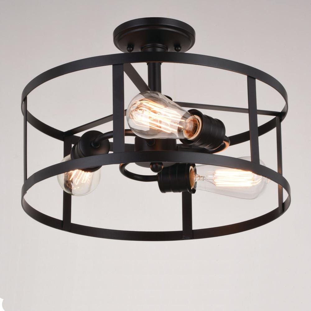 The modern soft industrial Akron collection has style and charm. A drum shape takes the stage in an oil rubbed bronze finish which surrounds the perfectly placed curving lamping, creating an ideal pairing. This 3-light semi-flush is perfect in any indoor space such as hallway, dining, kitchen, or bathroom. Make it more versatile by adding this light to your outdoor enclosed porch or patio for more curb appeal.