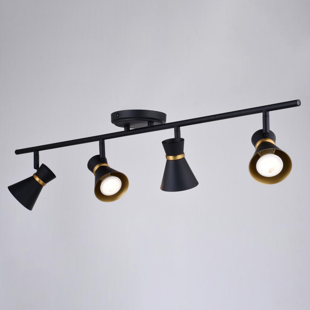 The Alto directional spot light collection shines bright in a 4-light linear flush mount. Four adjustable lamps offer the option of precise lighting for any large interior space. The matte black and gold satin brass finish combination sleekly adds an element of modernism to the tapered shades making the Alto the perfect solution for any living or working space. Included LED bulbs provide energy savings, low maintenance and long lasting performance.