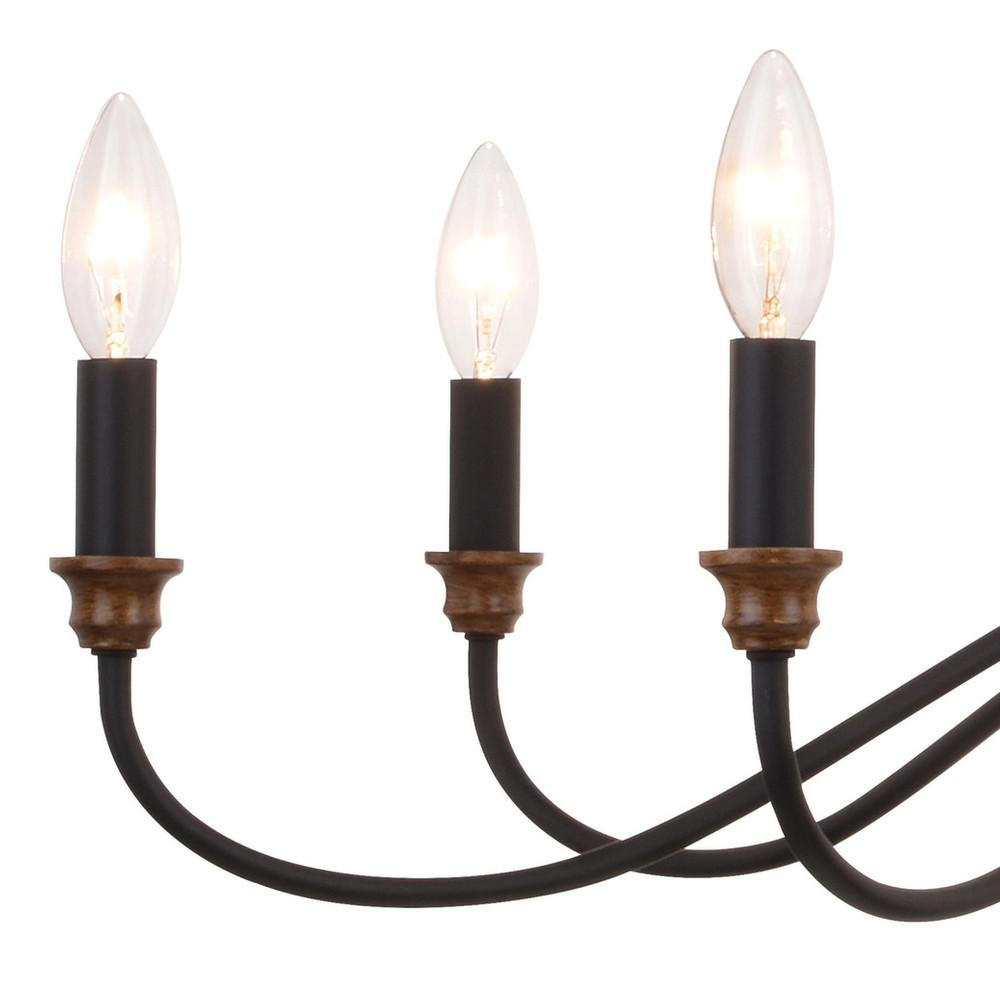 Annabelle 30-in. 6 Light Chandelier Matte Black and Brushed Walnut