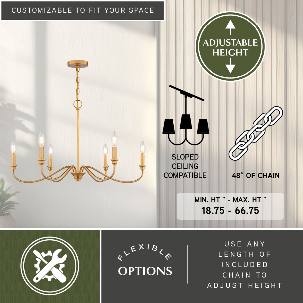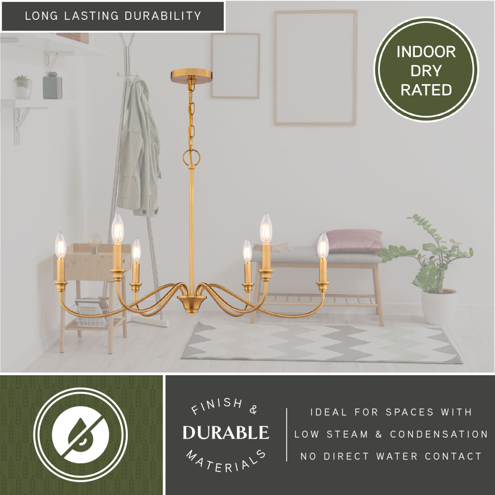Annabelle 30-in. W 6 Light Chandelier Muted Brass