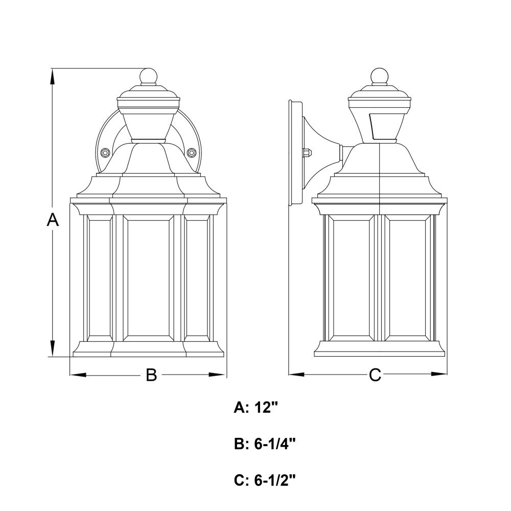 Measures 6.25-in W x 12-in H x 6.5-in D with a 4.33-in W x 4.33-in H x 2.07-in D backplate