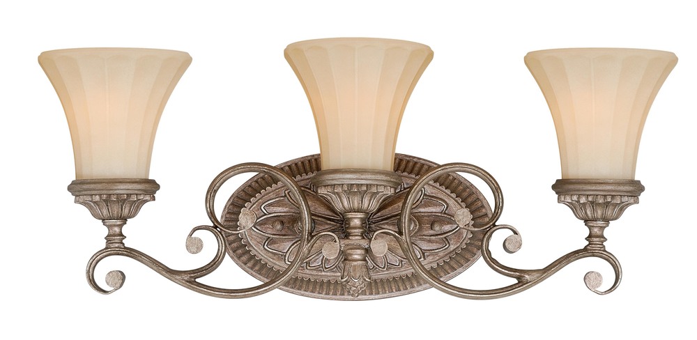 The double extruded curved arms, scavo glass and crystal accents are the key elements of this traditional collection. The even proportions and well-balanced design details highlight the natural beauty of the materials and are perfectly combined to create a sophisticated, elegant statement. The Avenant collection is offered in a rich French Bronze finish. This 3L vanity will become the focal point of your traditional style bathroom. Medium screw base lamping provides maximum light output. Mountable in up light or down light configuration. This is a full collection with coordinating pieces to decorate any room in the house, including 1L, 2L, 3L, and 4L vanities.