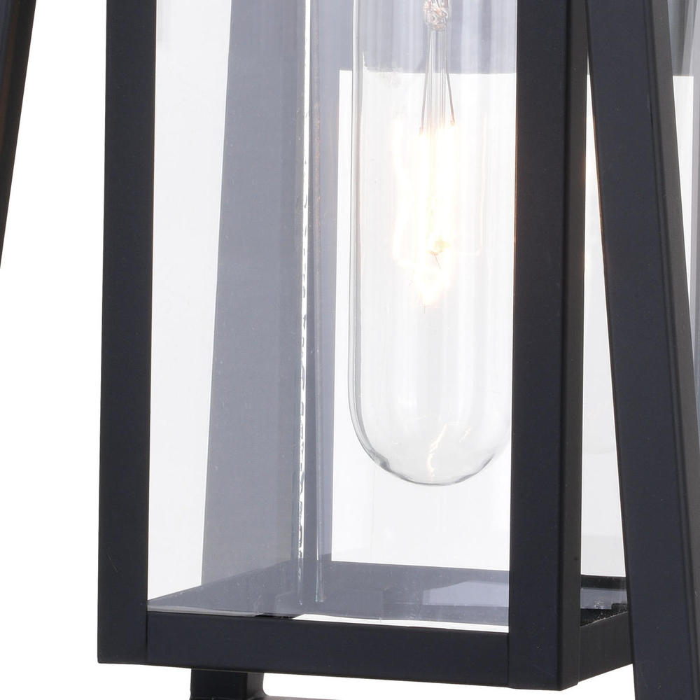 A tapered matte black double frame makes a stunning statement in the Blackwell outdoor collection. Clear seeded glass surrounds the warm glow of light in this contemporary lantern style wall light. The Blackwell creates a sleek element of class to perfectly coordinate any style choice. Ideal for covered porches, entryways, or any other area of your home.